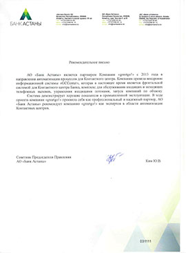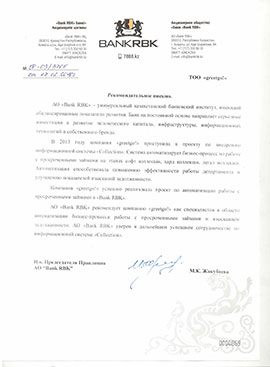 …АО «BankRBK» видит в компании «greetgo!» надежного партнера, который предоставляет качественный сервис и готов оказать содействие в реализации задач любой сложности в сфере информационных технологий…
